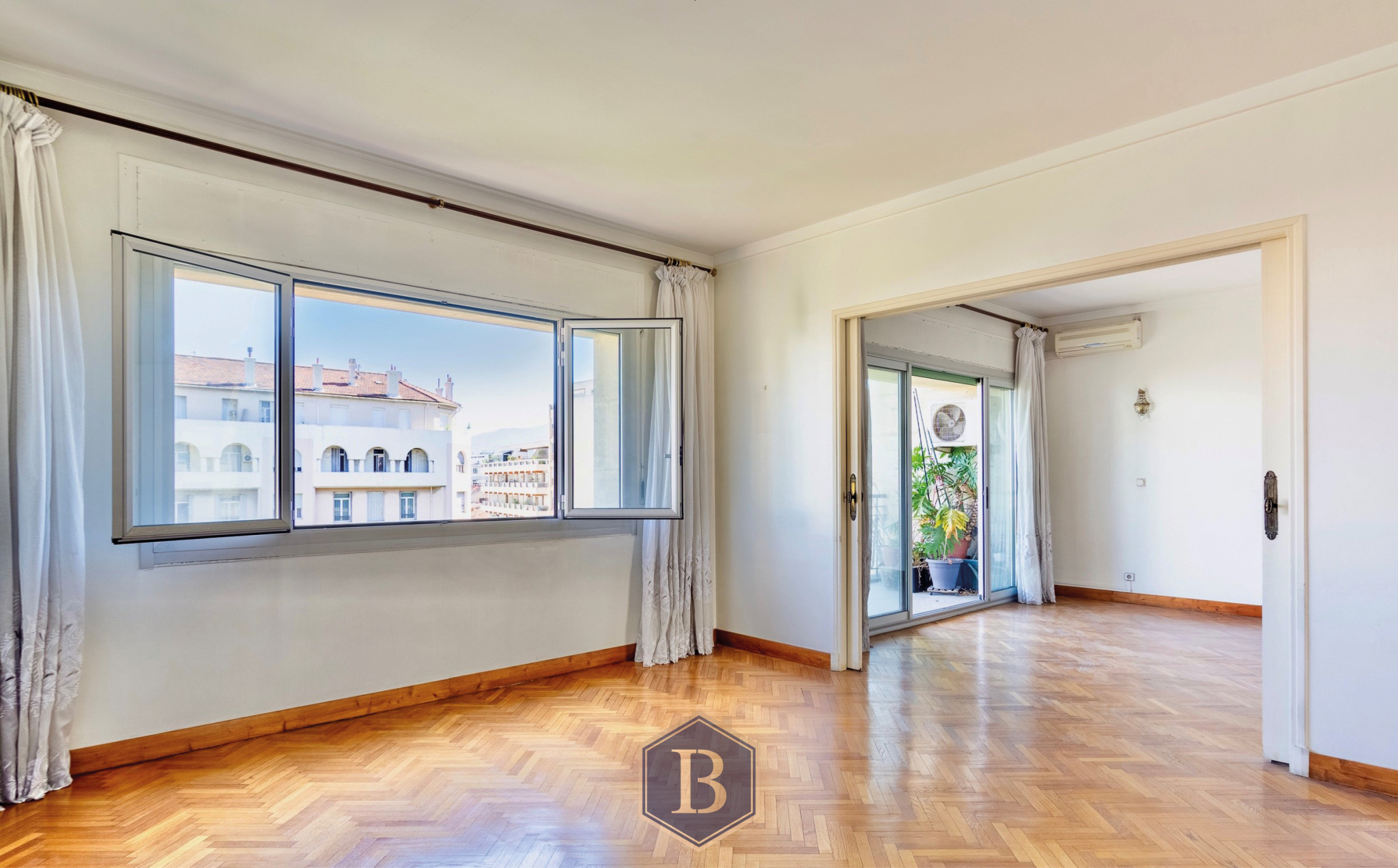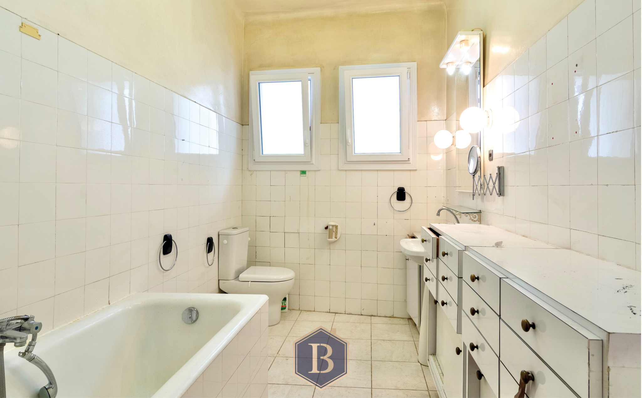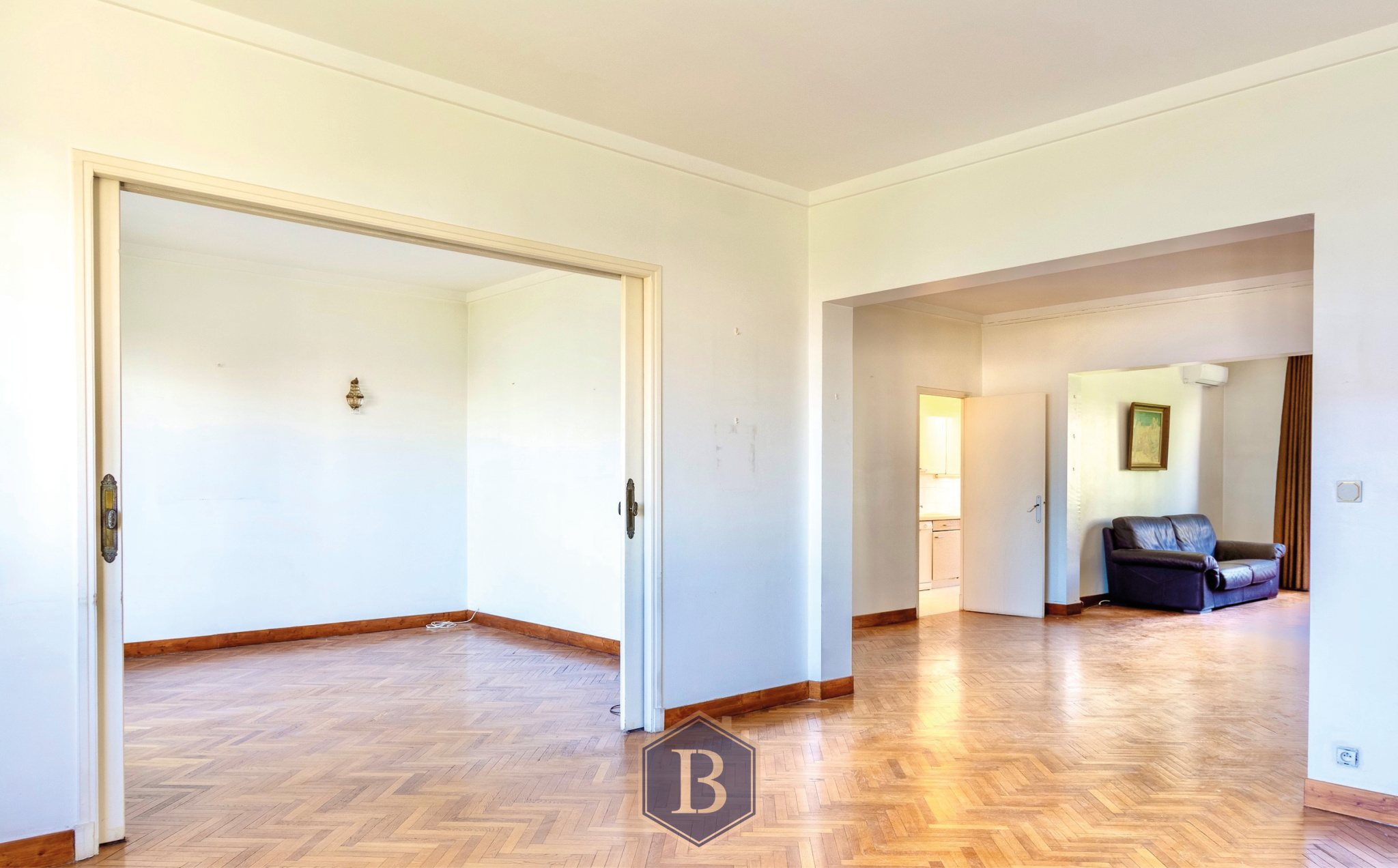 L’appartement, doté d’une belle hauteur sous plafond de 3m et d’un beau parquet en chêne massif à bâton rompu, se compose d’un vaste triple séjour, dont une partie donnant sur une terrasse de 6 m² avec vue dégagée et exposée EST, d’une cuisine avec loggia, de trois grandes chambres dont une suite parentale avec salle d’eau, d’une salle de bain avec toilettes. Possibilité de créer une chambre supplémentaire. Les menuiseries sont en double vitrage dans chacune des pièces. Des travaux de rafraichissement sont à prévoir.